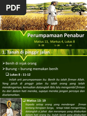 Benih itu ialah firman allah. Hanya yang jatuh ke tanah subur bisa bertumbuh dan berbuah berlipat ganda. Lukas 8 5 adalah seorang penabur keluar untuk menaburkan benihnya. Lukas 8 11 inilah arti perumpamaan itu.