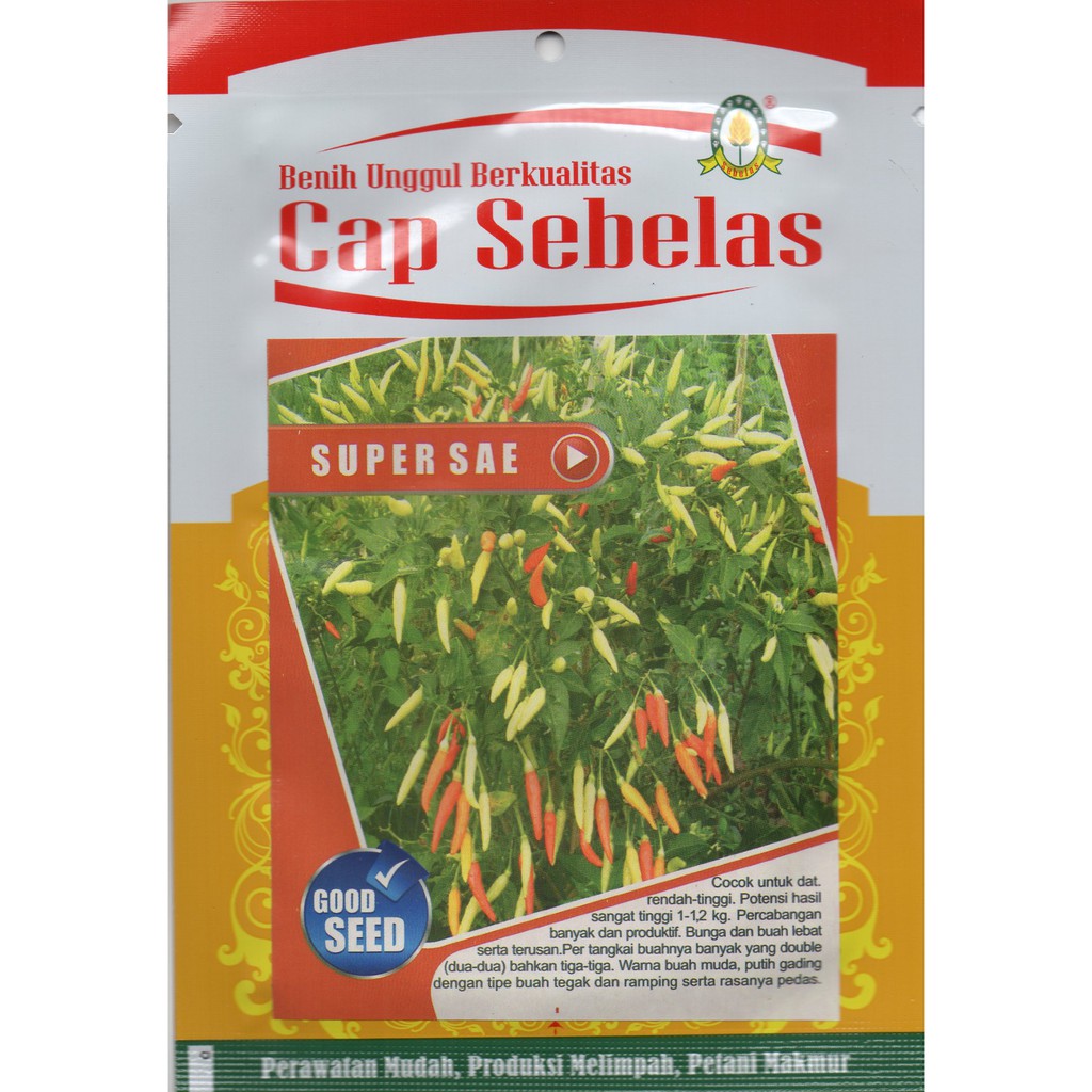 Cabe super sae jenis benih cabe rawit berkualitas terbaik ditanam petani hortikultura. Sekarang giliran benih unggul tahan penyakit untuk cabe lalap yaitu cabe hijau. Cabe hijau sendiri secara alami memang terkenal sangat tahan terhadap antraknosa. Benih cabe rawit f1 raga 2 adalah produk cap kapal terbang yang cocok ditanam di dataran rendah tinggi dan mudah dalam perawatannya tanaman cabe rawit raga tegak dengan ruas pendek dan buah lebat.