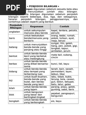Pembelajaran bahasa malaysia penjodoh bilangan. Untuk menunjukkan bilangan yang tidak tentu seperti semua segala seluruh beberapa banyak dan sebagainya. Penjodoh bilangan ialah kata yang digunakan untuk membilang unit benda orang haiwan tempat dan sebagainya. 2 berkumpul menjadi satu.