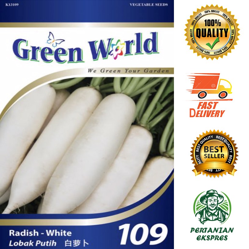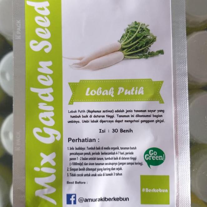 Benih sayur lobak putih. Lobak putih masuk ke dalam famili cruciferae. Tentang sayuran lobak lobak merupakan jenis sayuran yang memiliki bentuk menyerupai wortel yang membedakan adalah warnanya. Lobak putih merupakan sayuran yang seringkali dicampurkan ke dalam suatu bahan masakan. Penanaman lobak putih diatas batas dilakukan dengan j arak tanaman yang disyorkan iaitu 15 cm antara pokok dan 20 cm antara baris.