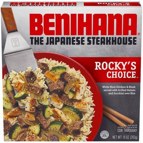 Benihana the japanese steakhouse frozen rocky s choice 10oz. Enjoy this classic teppanyaki take on chicken yakisoba for your next japanese menu or serve it as a savory side dish for busy weeknight meals. Benihana frozen entrees give you japanese steakhouse taste from the convenience of your home. Ready to eat in under 4 minutes this 26 ounce frozen dinner includes a microwaveable tray to streamline.