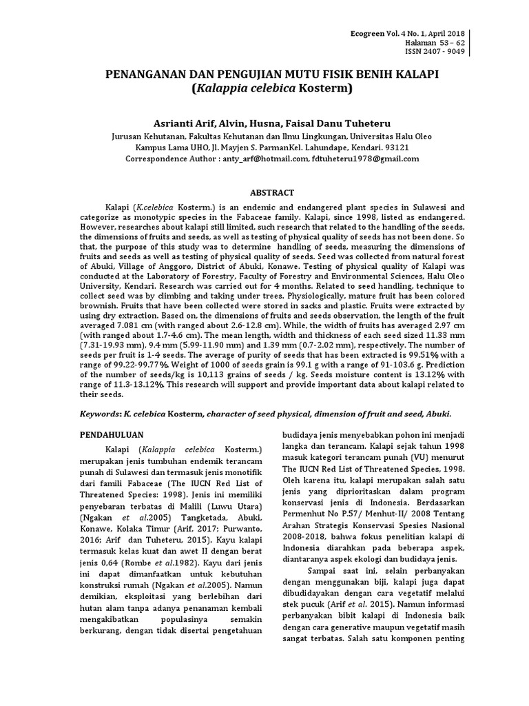 Memutuskan kualitas mutu hasil pengujian. Contoh benih yang bersifat ortodoks antara lain adalah benih acacia mangium wild akasia dalbergia latifolia roxb. Benih ortodoks kedelai memiliki kadar air yang relatif rendah sedangkan benih rekalsitran nangka memiliki kadar air yang relatif tinggi. Hal ini penting untuk meminimalisir terjadinya kesalahan dalam proses penanganan benih.