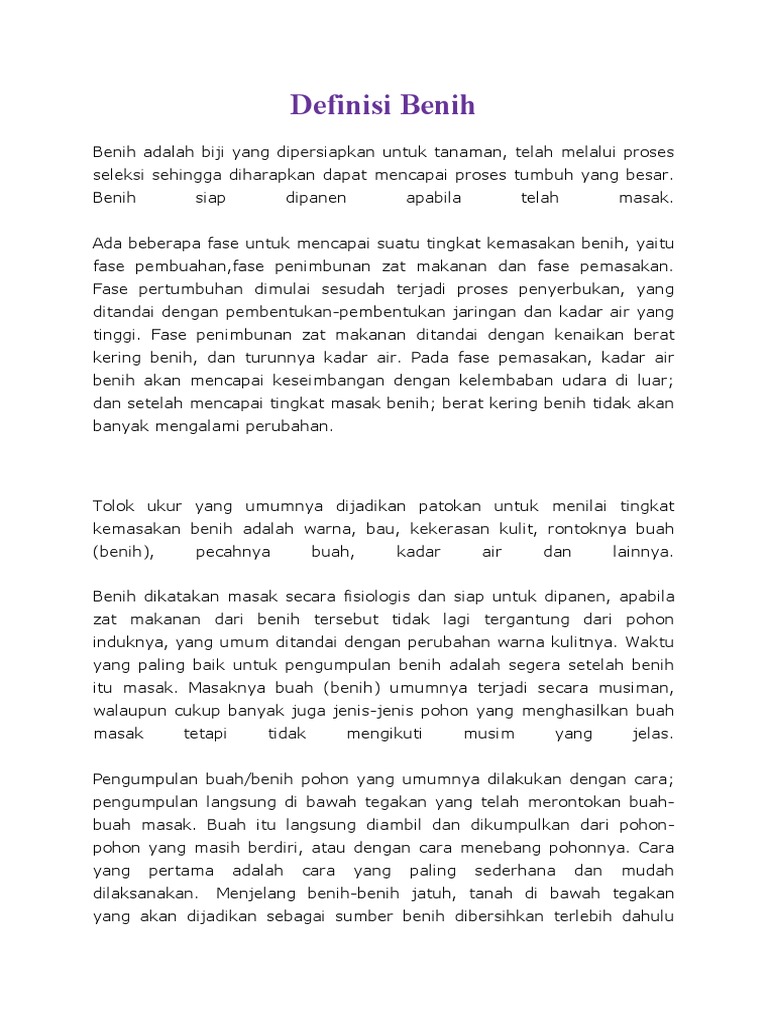 2 3 ruang lingkup benih memiliki fungsi agronomi dan merupakan komponen agronomi sehingga termasuk kedalam bidang ruang lingkup agronomi. Karena benih merupakan sarana produksi maka benih harus bermutu tinggi mutu fisiologis genetik dan fisik dari jenis yang unggul.